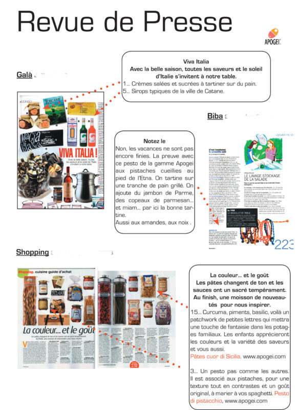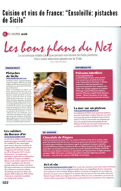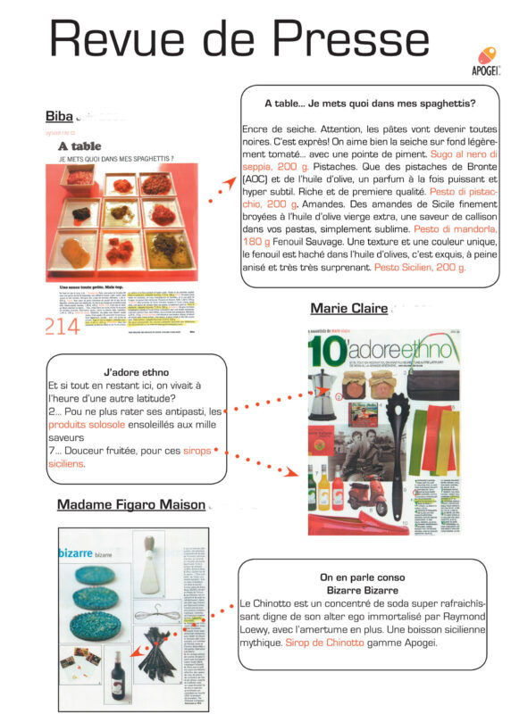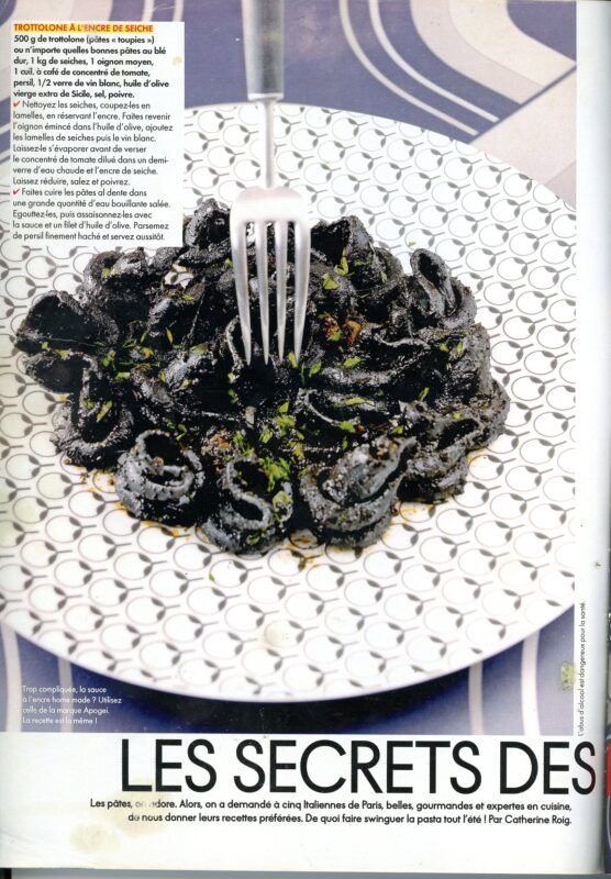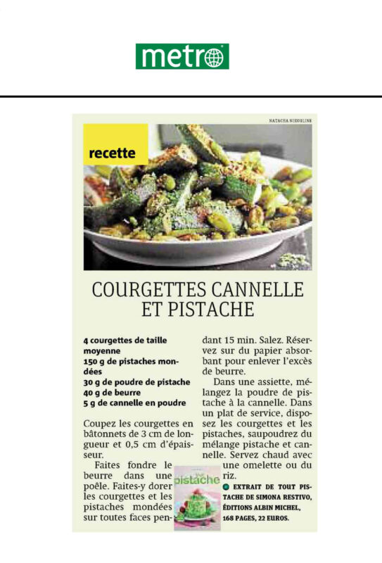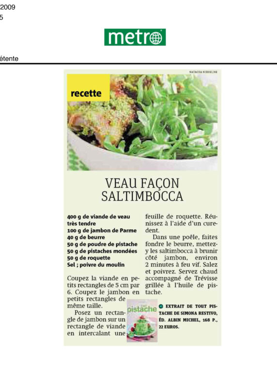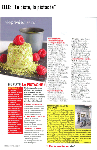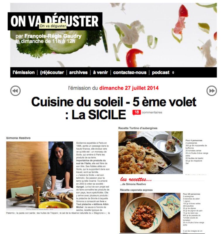 de la sauce tomate ! C’est beaucoup plus amusant… Je suis Sicilienne, une vraie de vraie. J’ai écrit un bouquin, « Tout Pistache », dédié à l’or vert de Bronte qui présente toute l’histoire de cette coquette verte avec 90 recettes inattendues ou incontournables. Je suis invitée dans des émissions de radio comme « On va déguster » sur France Inter pour parler de la cuisine du soleil ou sur le plateau de « Très très bon », l’émission de télé de Paris Première pour dire tout le bien que je pense des câpres de Salina. Des magazines comme Elle, Cuisine et Vins de France ou l’Espresso parlent de mon travail.