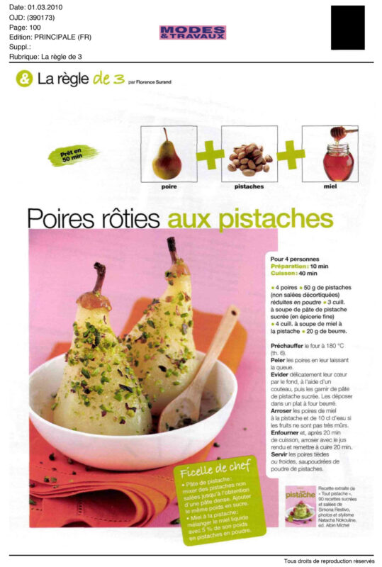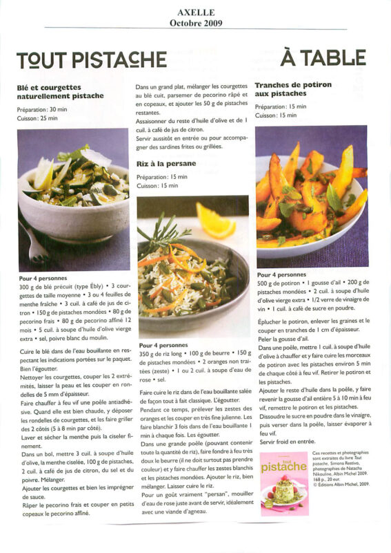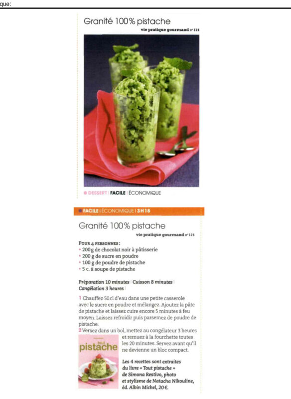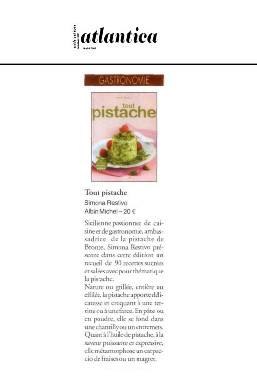 Nous avons été les premiers à présenter en France la pistache sicilienne et tous les produits liés à la production de Bronte, pour mieux en faire connaître l’utilisation, Simona Restivo a écrit le livre “Tout pistache” aux édition Albin Michel