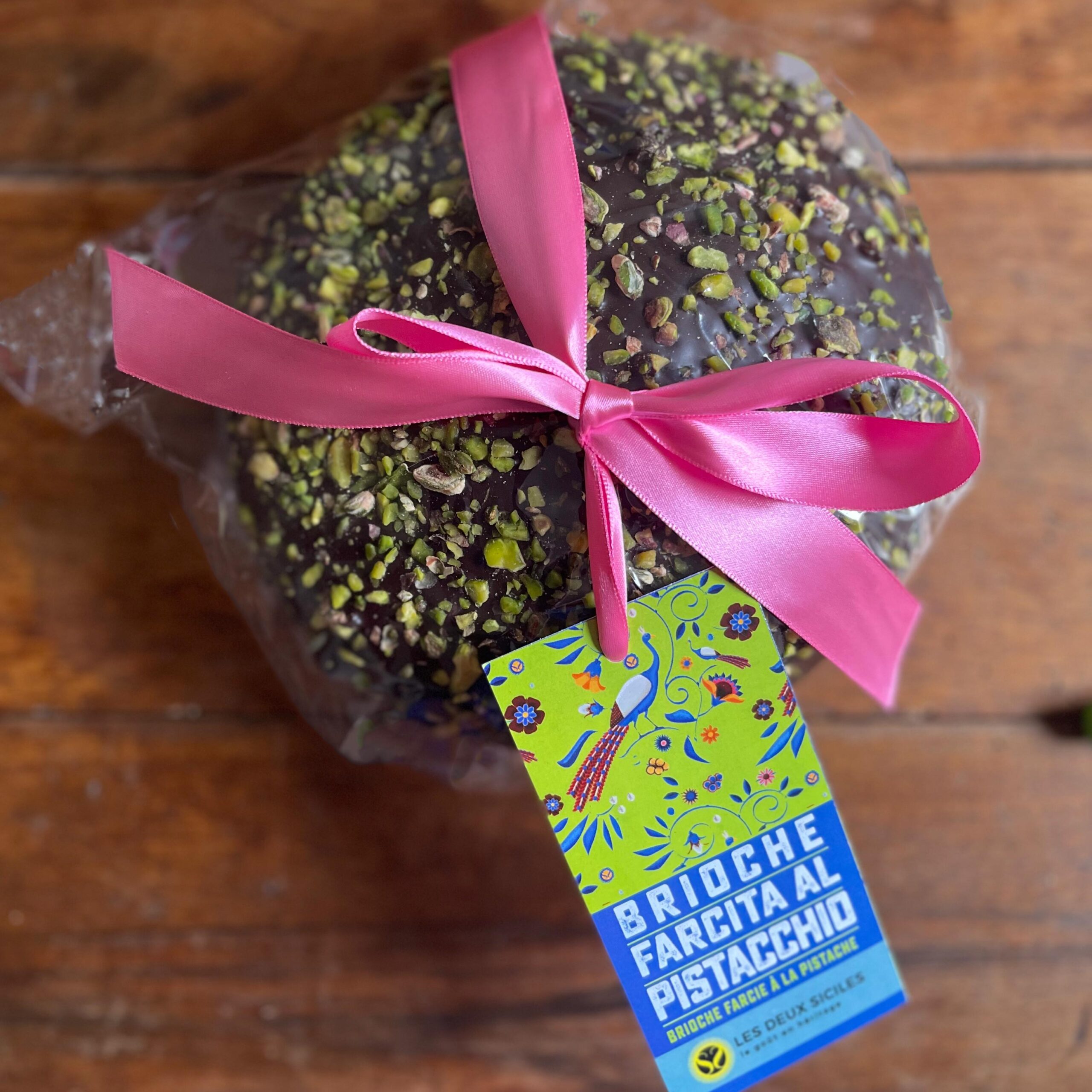 Les brioches Les Deux Siciles sont idéales pour tous les moments gourmands de la journée, du petit déjeuner au goûter ou pour compléter un repas de famille, cette brioche à la pistache a été cuisinée de façon artisanale, avec une pâte bien moelleuse, parfumée à la pistache et enrobée de chocolat blanc